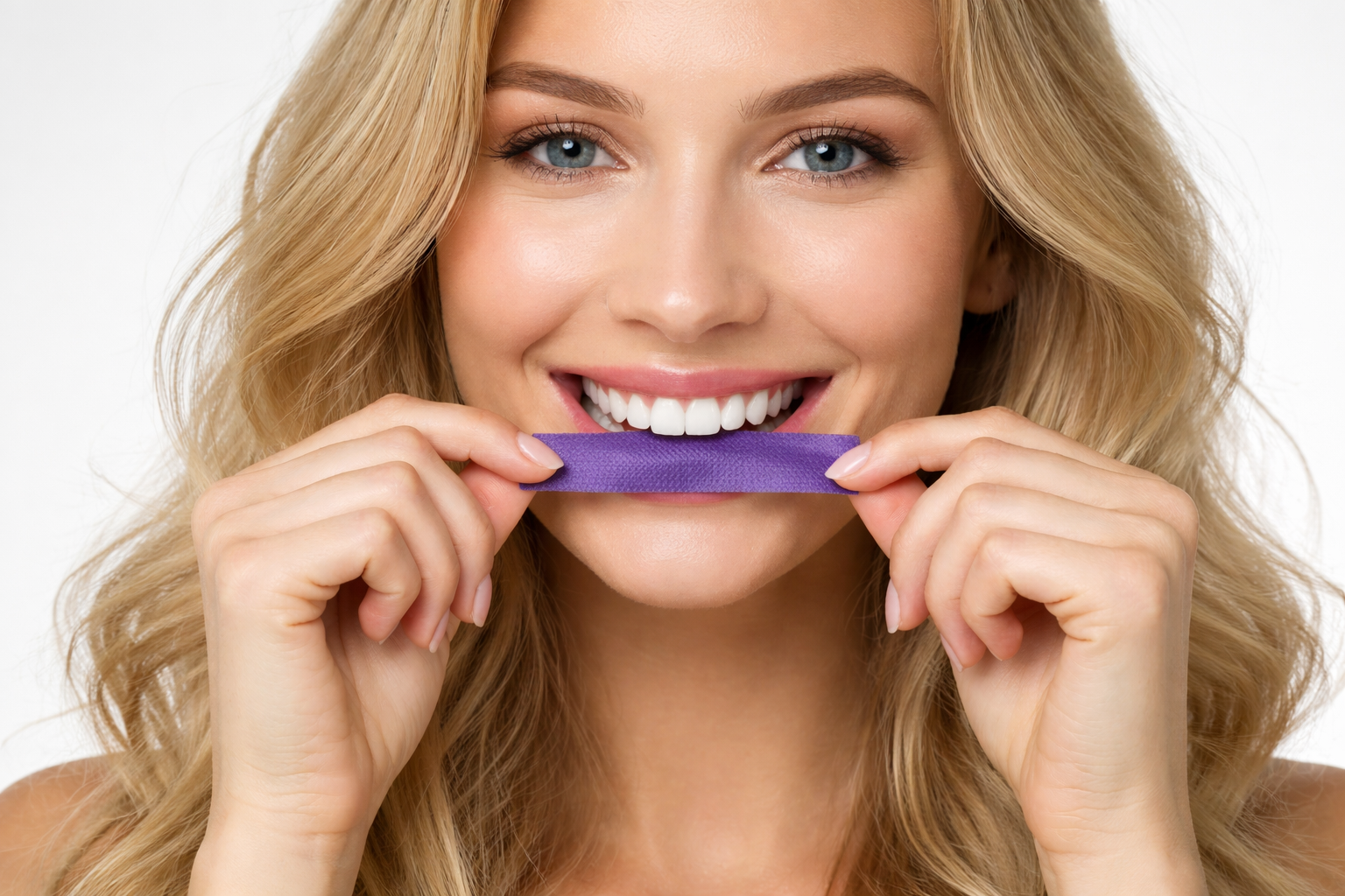 As nossas tiras roxas utilizam tecnologia de correção de cor para neutralizar instantaneamente os tons amarelados — para que o seu sorriso pareça mais luminoso desde a primeira utilização e mais branco ao longo do tempo.
